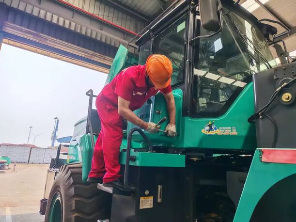 作為此次客戶關(guān)愛行活動的重要一站,山推服務(wù)團隊頂著盛夏酷暑,率先奔赴山東區(qū)域某港口,為客戶的6臺LE60-X5電裝整機提供全方位檢修服務(wù)。抵達現(xiàn)場后,服務(wù)人員迅速投入工作。針對港口作業(yè)環(huán)境的特點,團隊制定了精細化服務(wù)方案:首先對6臺整機開展全車點檢,重點檢查核心組件的運行狀態(tài),細致排查螺栓緊固度,確保設(shè)備關(guān)鍵部位無隱患。