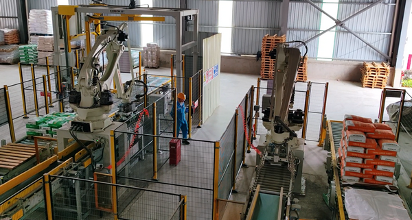 根據(jù)客戶需求選配自動包裝機,對成品料進行閥口袋或敞口袋包裝,包裝速度快、計量準確。包裝好的成品料通過輸送帶有序輸送至碼垛系統(tǒng)進行碼垛,實現(xiàn)全流程智慧管控。