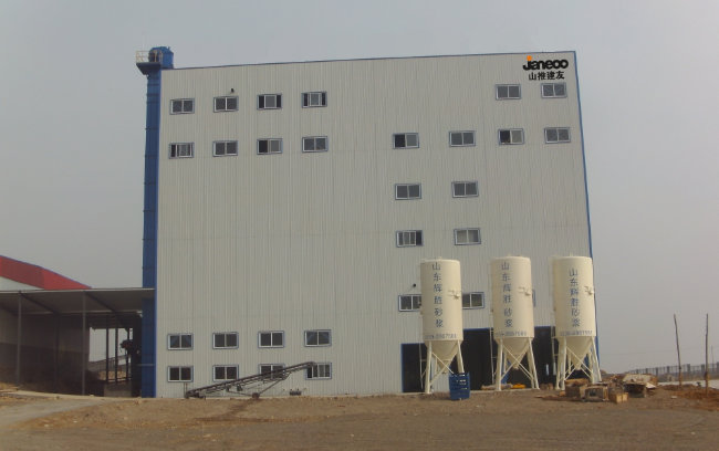 2014年9月,山東客戶采購山推建友1套SjGJD060-3G型干混砂漿站成功應(yīng)用,用于預(yù)拌干混砂漿生產(chǎn)線,目前該設(shè)備使用效果良好。該設(shè)備料倉位于主樓設(shè)備旁邊,計量位于料倉下方,計量完成后經(jīng)輸送機(jī)、提升機(jī)后送入攪拌機(jī),生產(chǎn)率高,外觀雄偉,適合普通干混砂漿的生產(chǎn)。