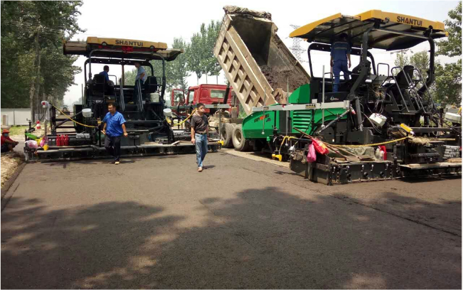 某國道路段水穩(wěn)施工,攤鋪寬度6m,攤鋪厚度30cm。設(shè)備作業(yè)效果得到施工方及用戶的高度認(rèn)可,使得用戶相繼再次購買兩臺該型號設(shè)備。