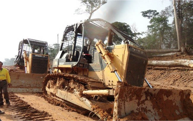 SD22F推土機作業(yè)于非洲某森林,承擔道路清障,大型木材托運等工作,SD22F伐木版推土機,增加伐木棚提升安全性,后配置機械絞車,牽引力強勁,讓施工更簡單。