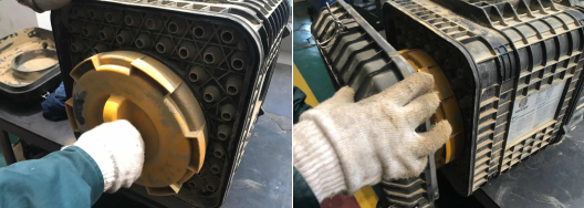 2、用雙手旋轉(zhuǎn)濾芯密封蓋直至旋下密封蓋,在殼體中輕輕的取出舊濾芯。