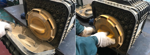 6、確保濾芯安裝牢靠后,用雙手旋入濾芯密封蓋,如有出現(xiàn)濾芯密封蓋無法完全旋入的情況,應(yīng)檢查濾芯是否有卡滯、安裝不到位的情況,濾芯密封蓋安裝無誤后,安裝側(cè)蓋板,依次緊固空氣濾清器周圍的卡箍,檢查空氣濾清器密封性,確保各部件沒有泄漏。