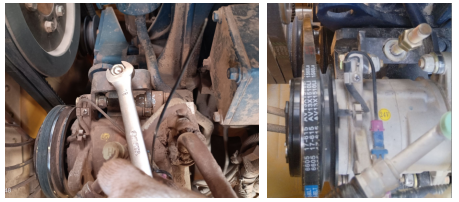答:壓縮機(jī)皮帶打滑導(dǎo)致的吱吱響,一般是因?yàn)槠q緊不足引起的,可以通過調(diào)整皮帶漲緊度解決。如有必要對打滑嚴(yán)重的皮帶進(jìn)行更換。(務(wù)必發(fā)動機(jī)熄火后進(jìn)行此操作)