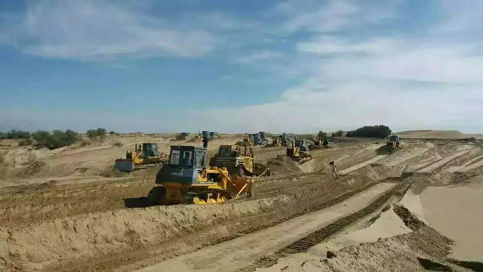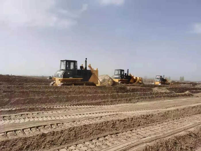 項目施工方考慮到沙漠惡劣的施工環(huán)境,經(jīng)過多方比較,最終選擇山推推土機(jī)、裝載機(jī)、平地機(jī)一體化產(chǎn)品機(jī)群作為項目施工的“主力軍”,承擔(dān)治沙平整土地、土方施工作業(yè)。山推也不辱使命,憑借出眾的施工效率、穩(wěn)定的產(chǎn)品性能、及時的售后服務(wù)保障,確保項目進(jìn)度順利進(jìn)行。
