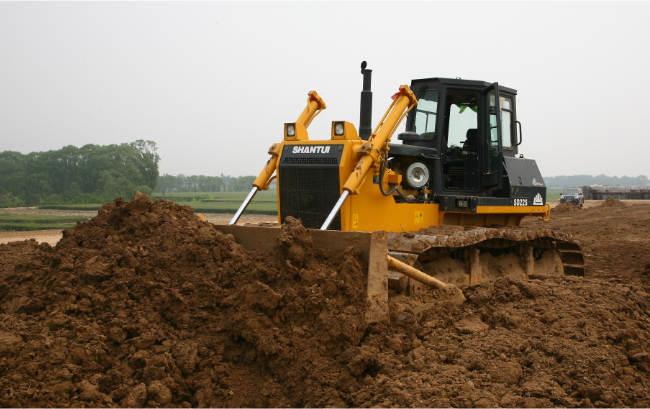 SD22S推土機(jī)配置重發(fā)發(fā)動(dòng)機(jī),采用濕地加長(zhǎng)臺(tái)車,船型履帶板,加寬直傾鏟接地比壓小,適合泥塘、沼澤地等工況。