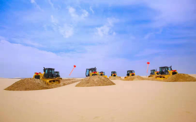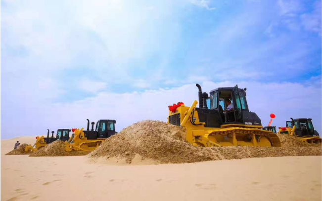 SD16D推土機(jī),助力國家沙漠治理、光伏項目的建設(shè)。沙漠地區(qū)溫度高,風(fēng)沙粉塵大對推土機(jī)進(jìn)氣系統(tǒng),冷卻系統(tǒng),駕駛室密封有嚴(yán)格的要求,SD16D推土機(jī)針對沙漠地區(qū)惡劣工況,定制化開發(fā),由于超高的出勤率,超低的維護(hù)保養(yǎng)成本,贏得了用戶的充分認(rèn)可,為沙漠經(jīng)濟(jì)先導(dǎo)區(qū)的建設(shè)保駕護(hù)航。