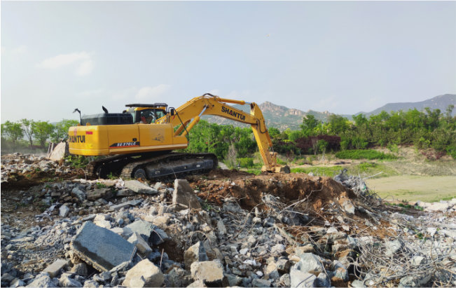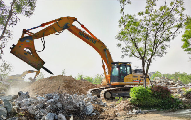 山東某地違章建筑群拆除施工,施工工期短、進(jìn)度急,二十四小時(shí)連續(xù)作業(yè),山推數(shù)臺(tái)挖掘機(jī)參與施工。多種品牌挖掘機(jī)同臺(tái)作業(yè),山推挖掘機(jī)機(jī)以動(dòng)力足、質(zhì)量好、效率高、故障率低得到施工方認(rèn)可。
